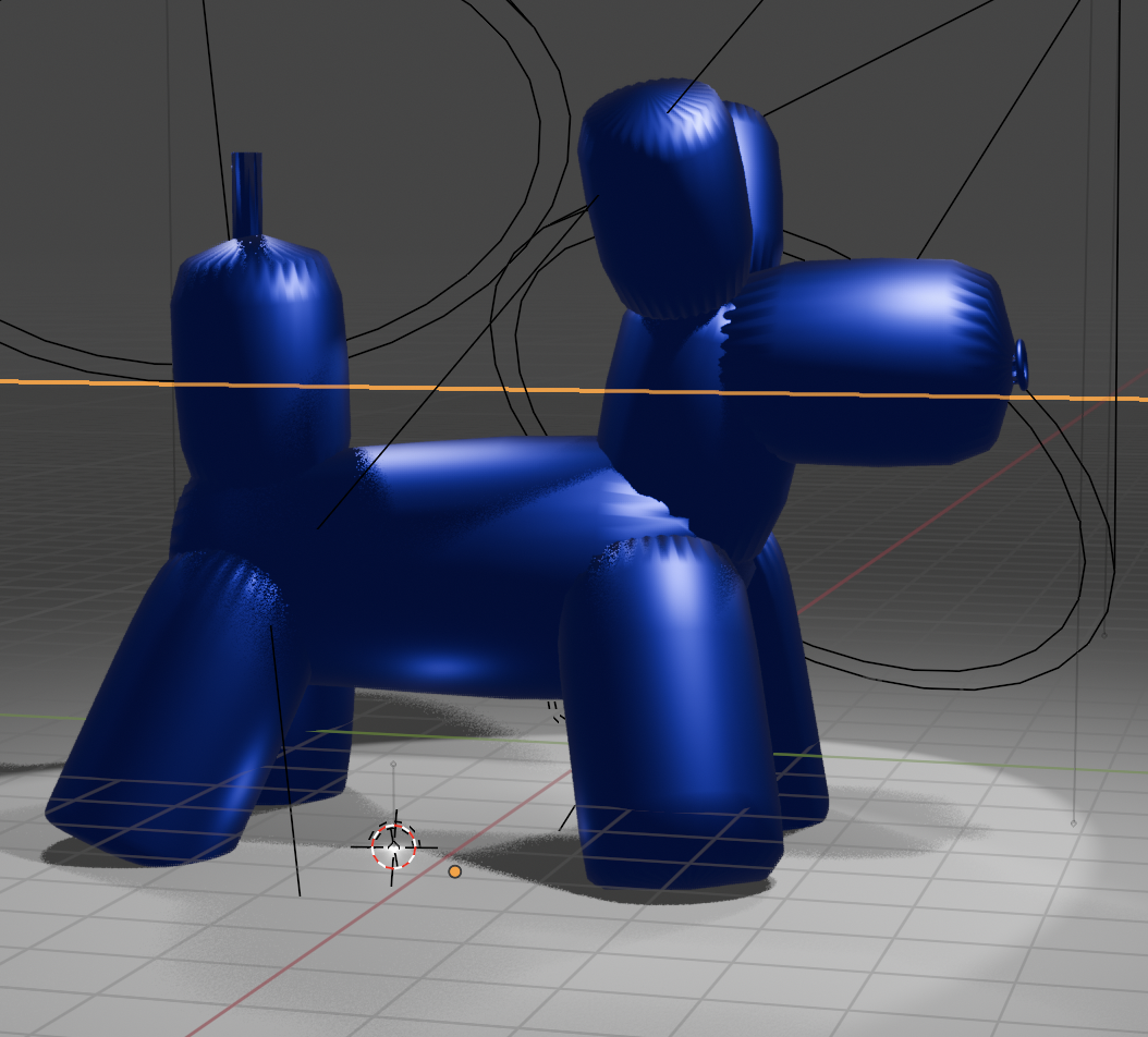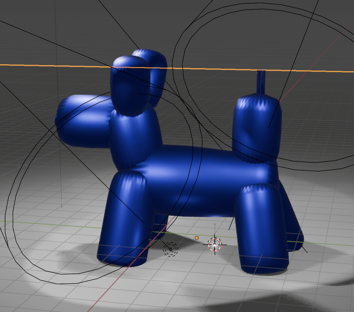To make this balloon dog i started with a cyclinder shape for the body and then followed up by adding all parts meaning the ears, face, legs and tail. After that was done, I started shaping it up and addind subdividers to move more in detail. Once i had a good base i started adding modifiers in the subdividers to give it a bloated ballon look. Finally i added a mettalic blue colour to give it the relection look of a balloon.