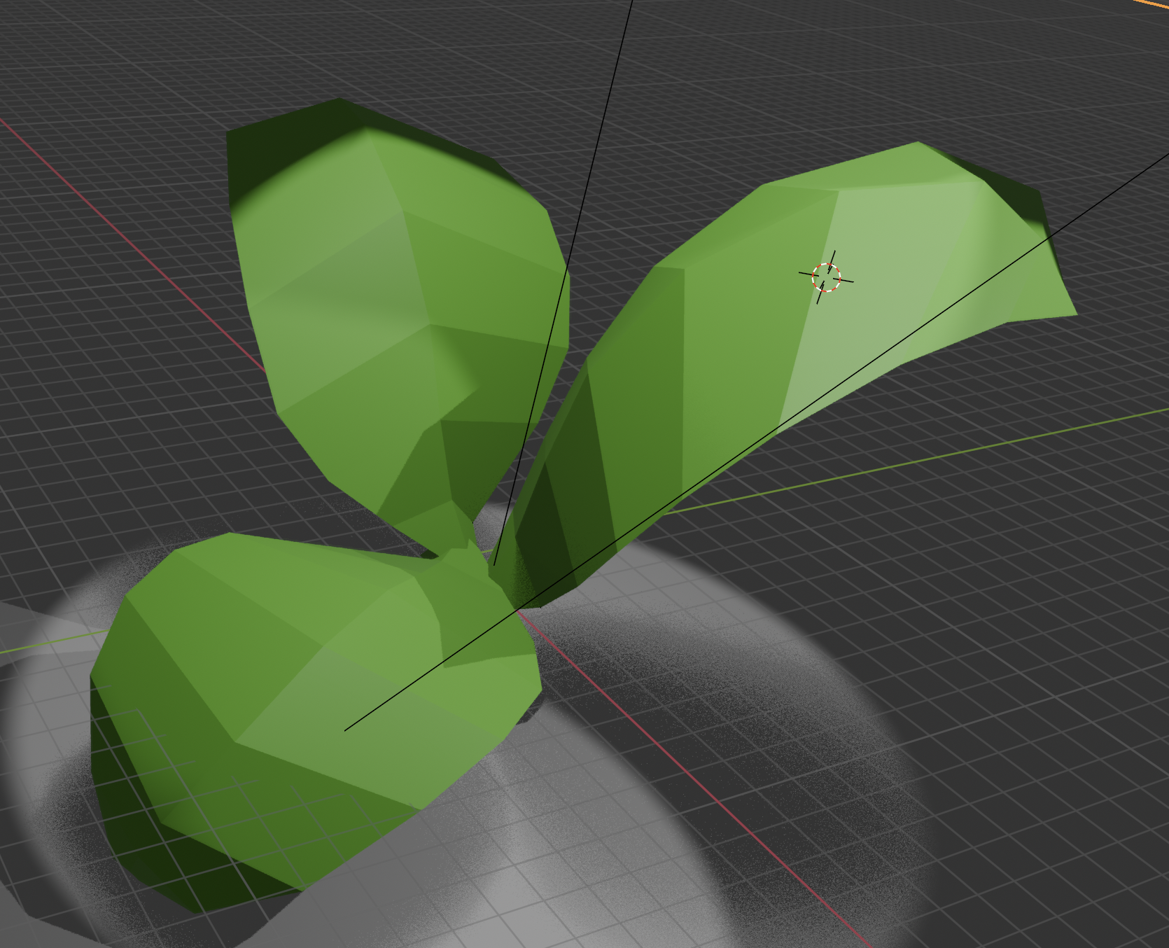 To Make this plant i simply took a face and trhen started to exrude it where it's big enough to start taking the edges and folding them. Once that was done i would move it around until it gives an organic fold like a leaf. i then added colour and lighting.